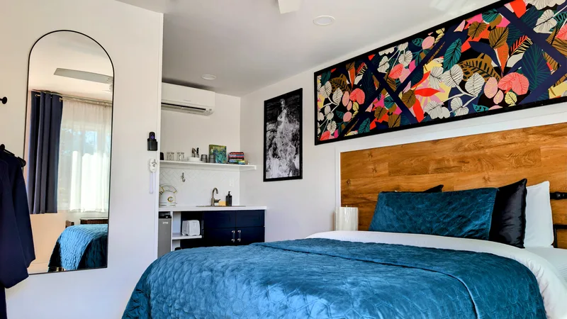 Our queen kitchenette rooms are perfect for couples or solo travelers who want the freedom to prepare their own meals. Each room features a queen bed and a fully equipped kitchenette with fridge, microwave, coffee maker, toaster, and a full set of dishes and utensils. Blackout curtains ensure a great night's sleep.